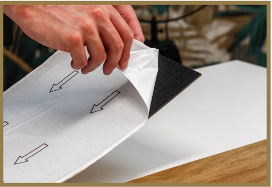 8. Retira a proteção de papel da face autoadesiva do pavimento e cola-o à base.